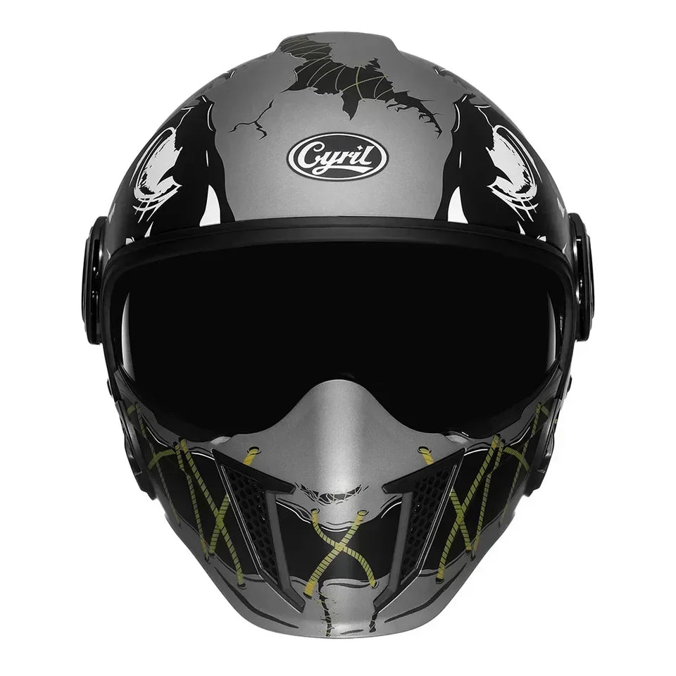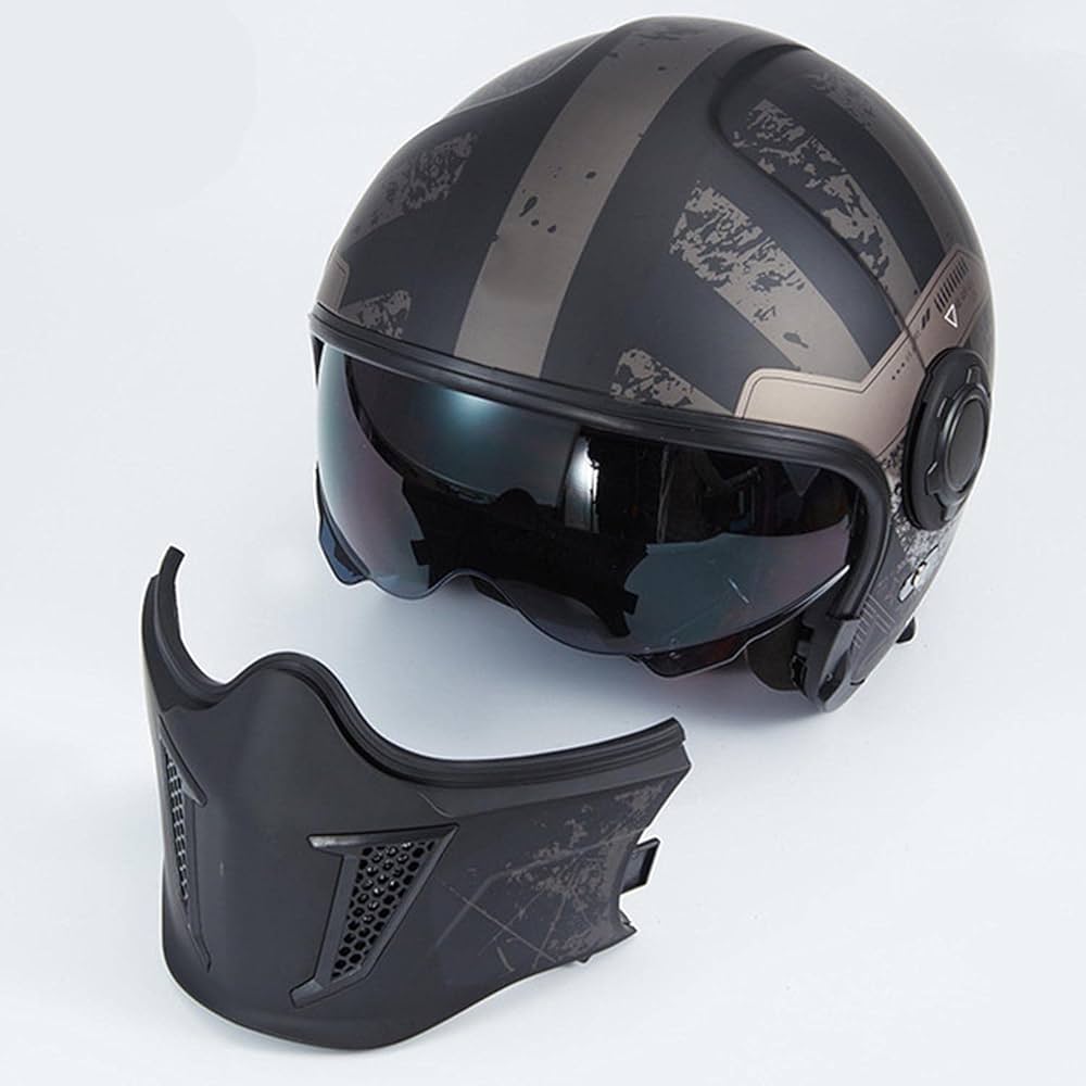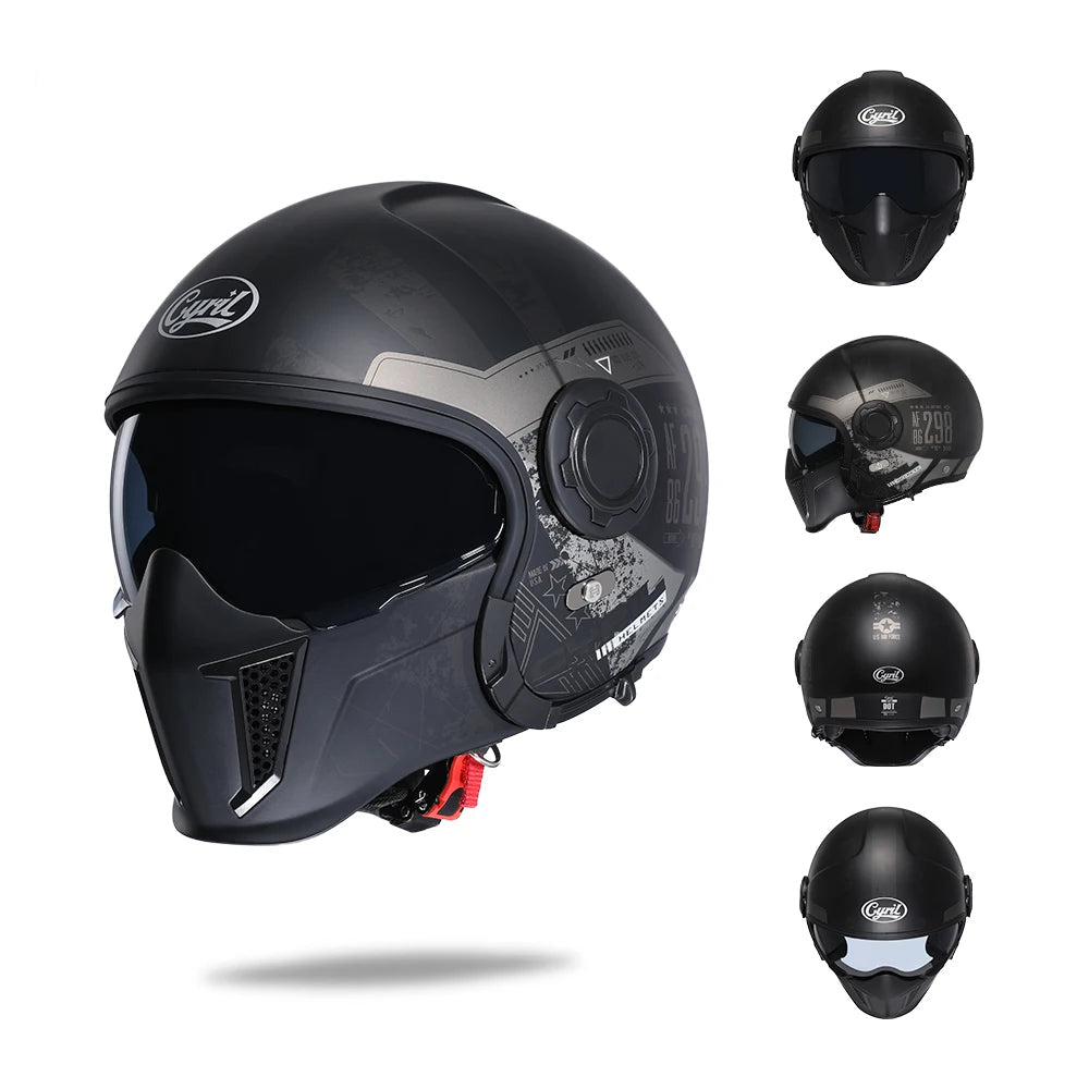 Casque Moto Intégral | Style Combat Rétro | Visière Double + Mentonnière Détachable | Homologué ECE & DOT