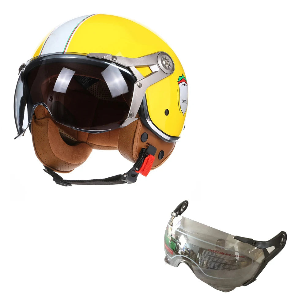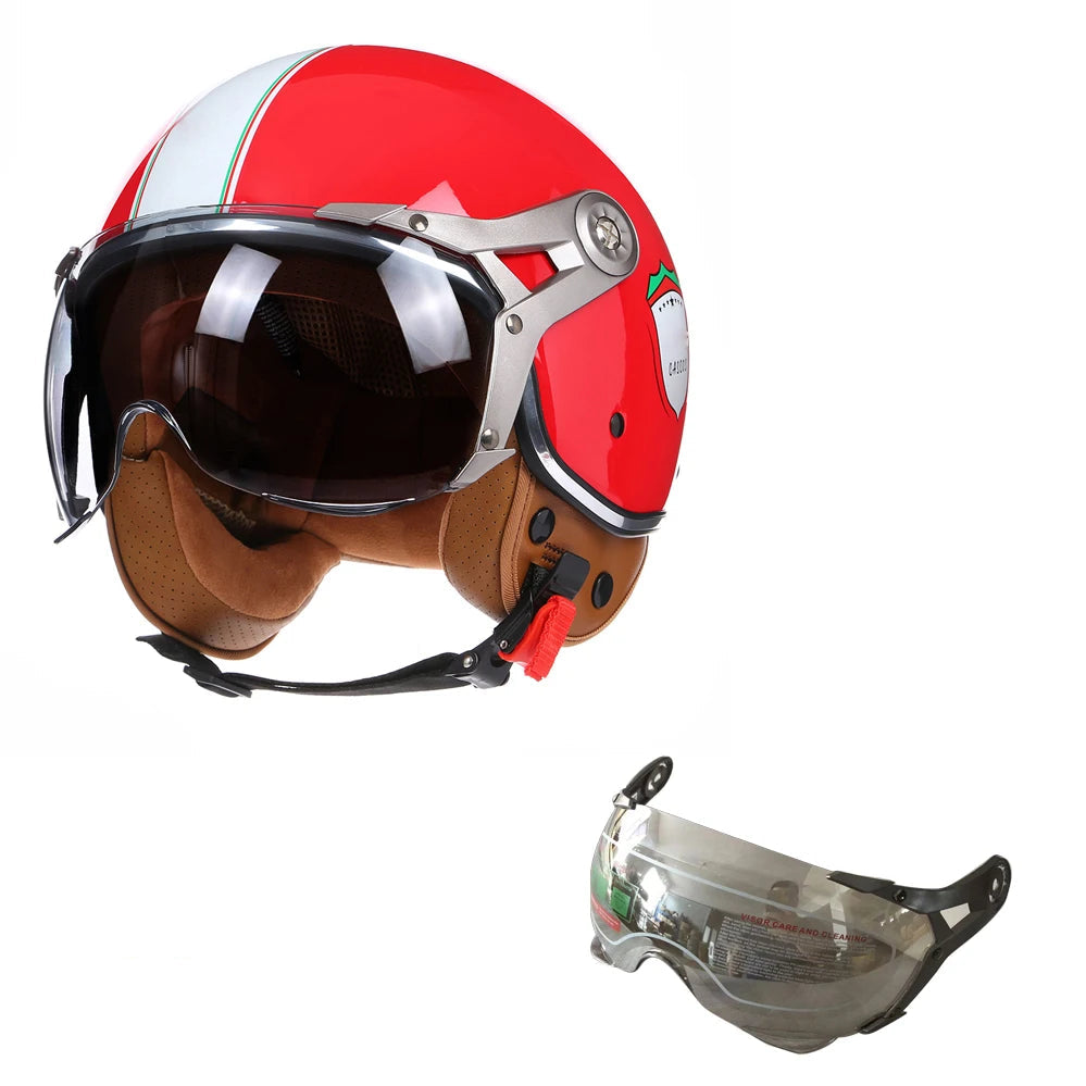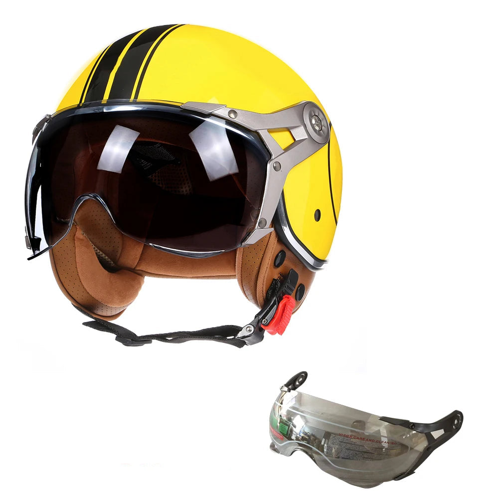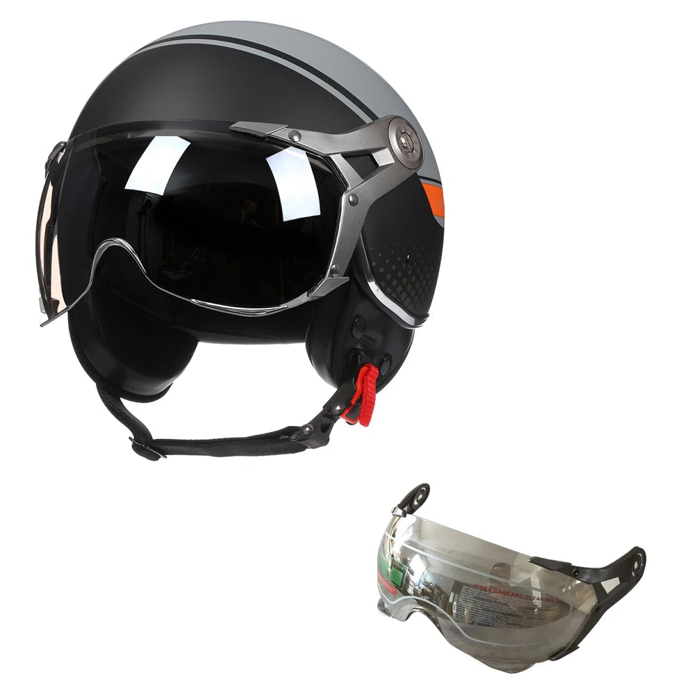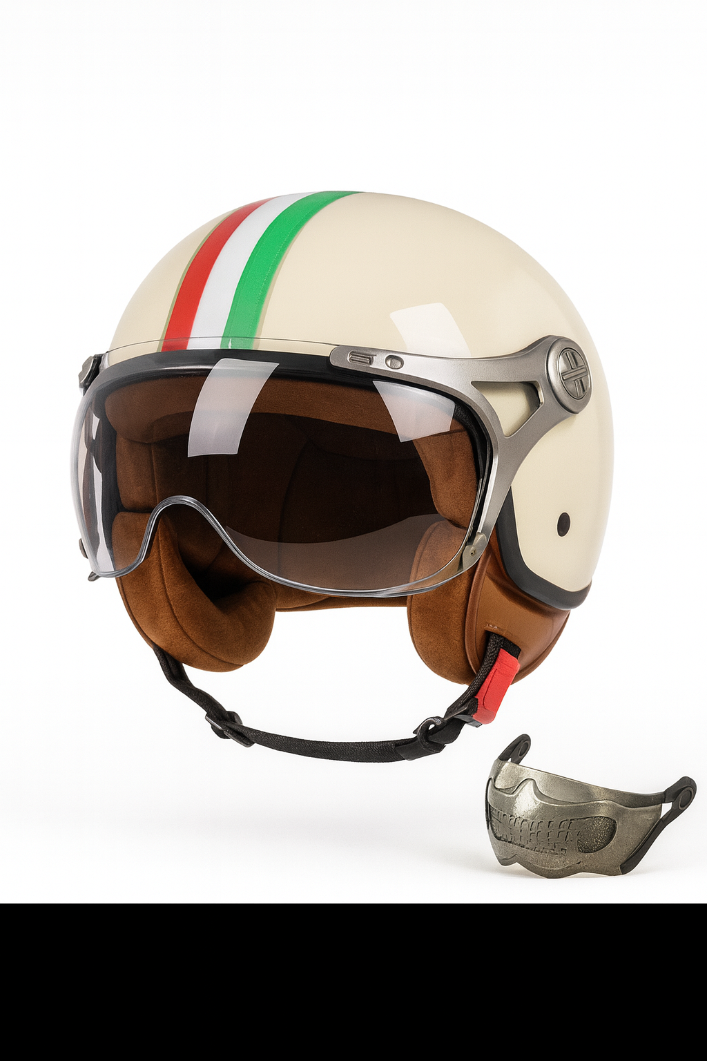 Adoptez un look élégant tout en restant protégé. Ce casque Jet 3/4 allie design classique, confort respirant et sécurité certifiée. Idéal pour les déplacements urbains ou vos balades à deux roues — avec visière offerte incluse.