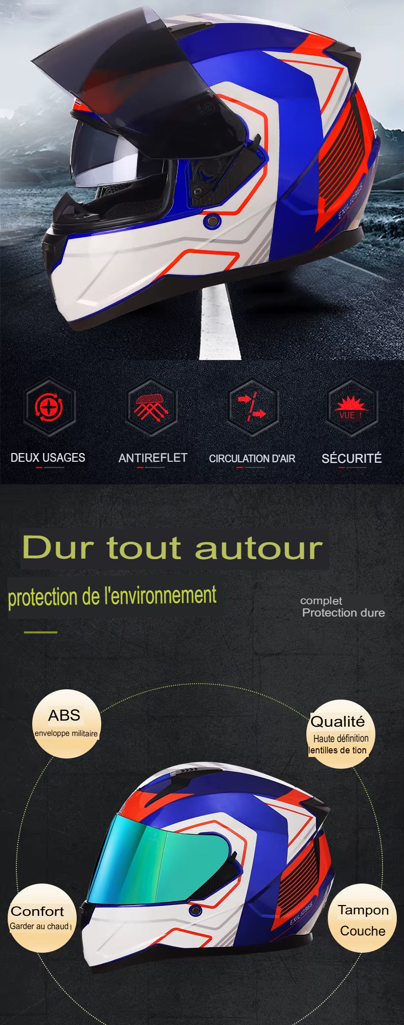 Casque modulable moto – intégral, certifié DOT & ECE, confort 4 saisons & style sportif