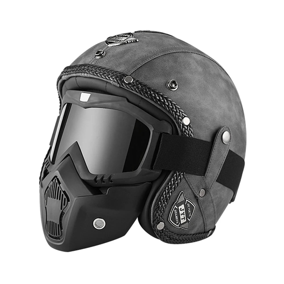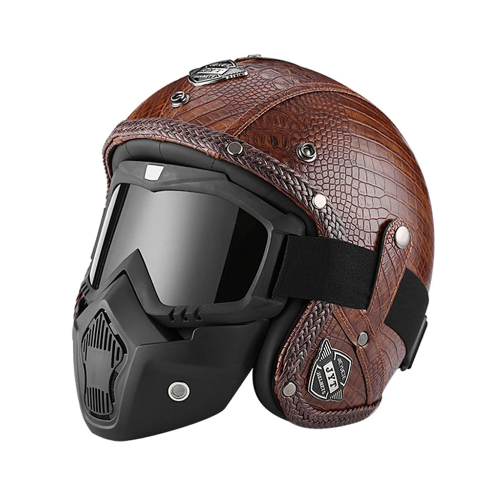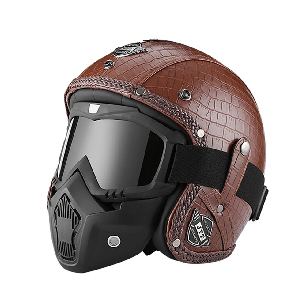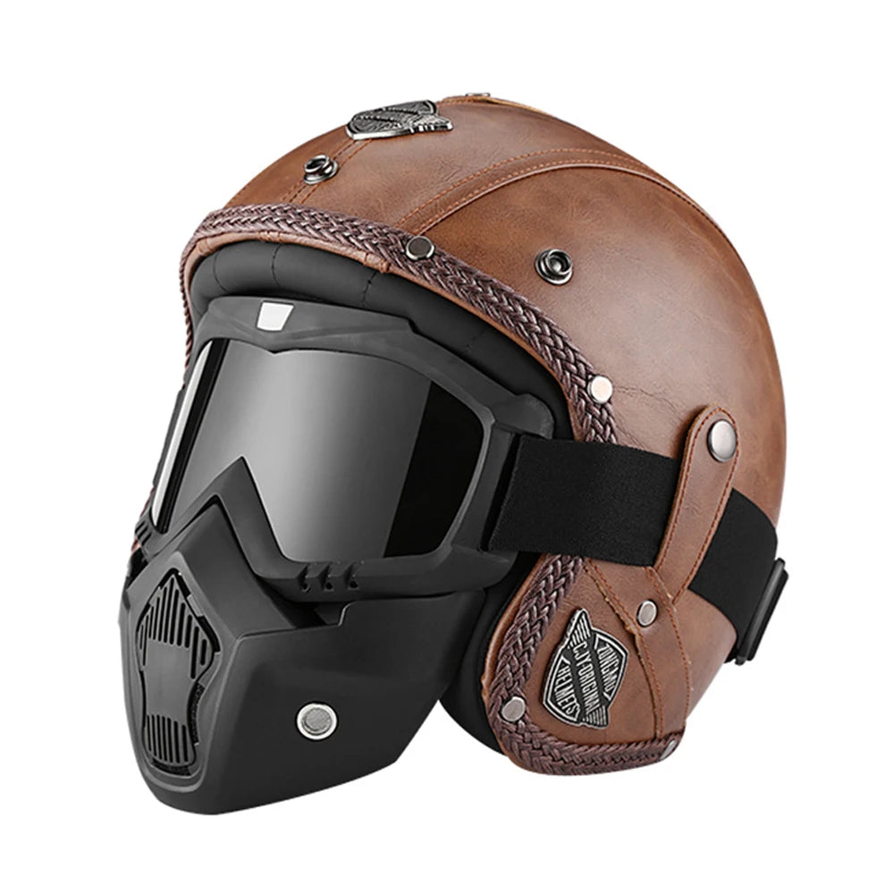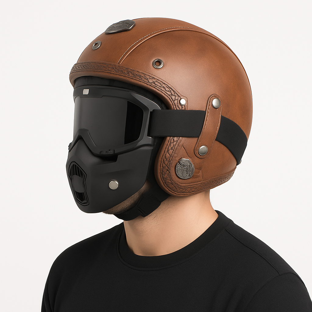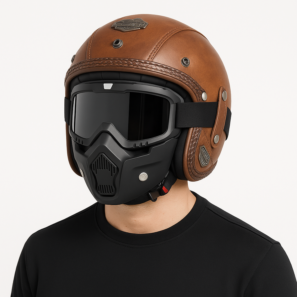 Casque moto vintage BIEPU – Casque ouvert style rétro en ABS. Ce casque moto vintage revisite l’esthétique rétro avec une finition élégante et des contours en cuir camel, pour un look café racer affirmé. Conçu pour les motards passionnés de style et de sécurité, ce casque est homologué DOT & ECE, et combine confort moderne avec charme old-school. Parfait pour vos balades urbaines ou vos virées en deux-roues au look néo-rétro.