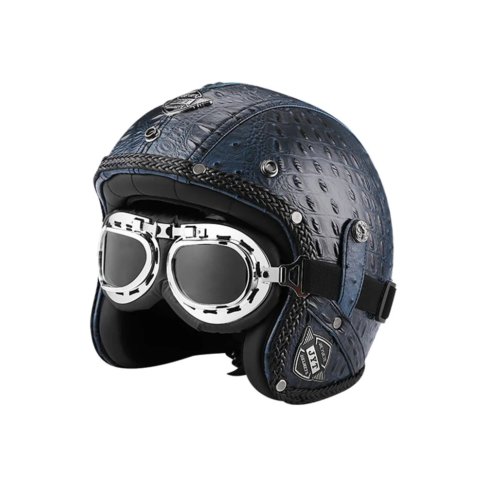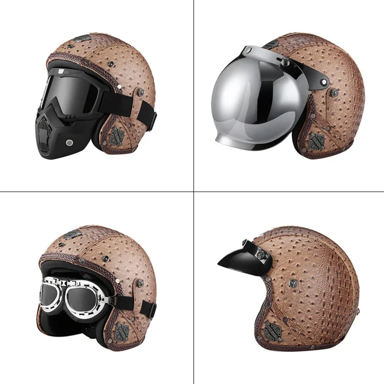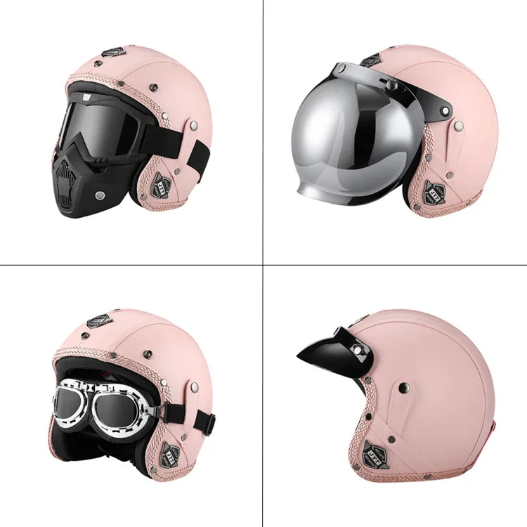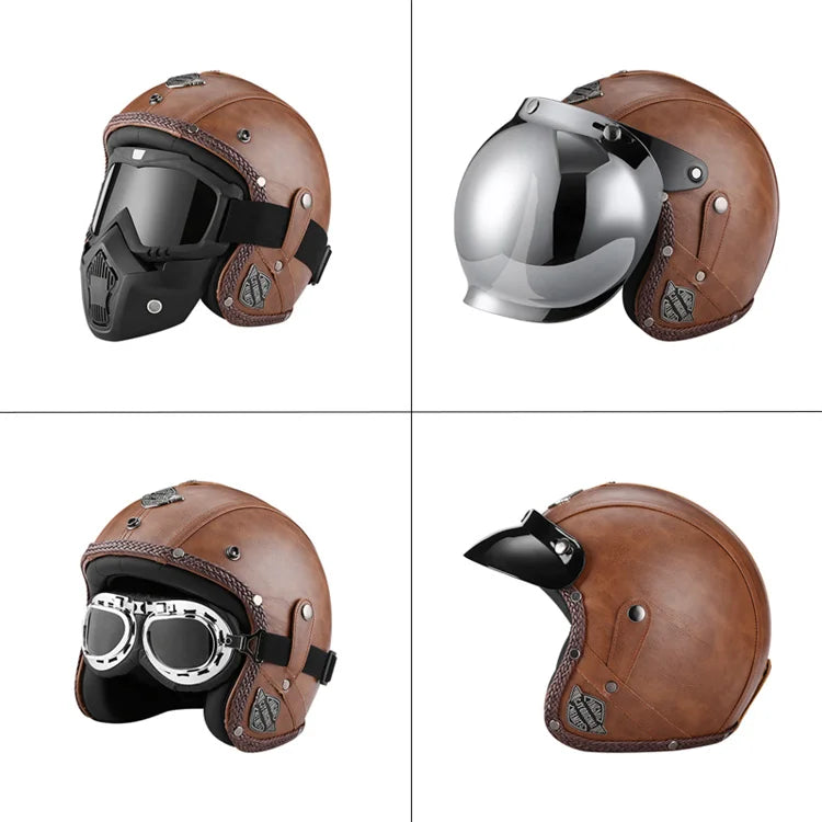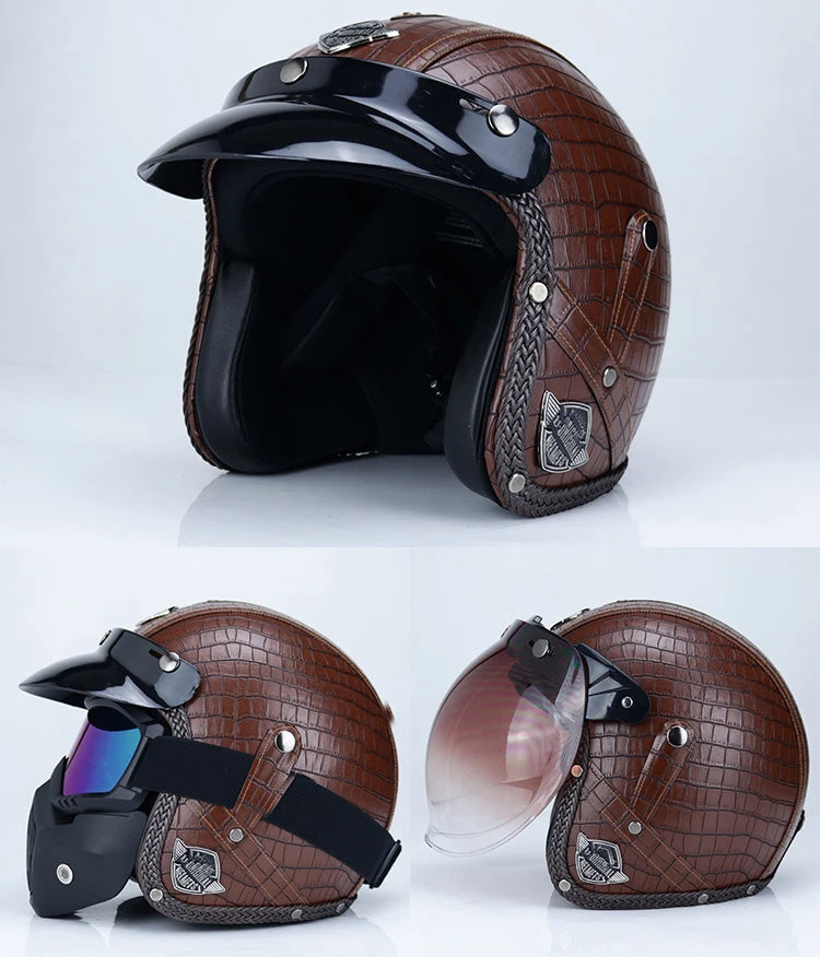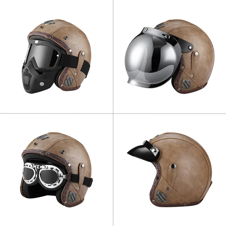 Casque moto vintage BIEPU – Casque ouvert style rétro en ABS. Ce casque moto vintage revisite l’esthétique rétro avec une finition élégante et des contours en cuir camel, pour un look café racer affirmé. Conçu pour les motards passionnés de style et de sécurité, ce casque est homologué DOT & ECE, et combine confort moderne avec charme old-school. Parfait pour vos balades urbaines ou vos virées en deux-roues au look néo-rétro.