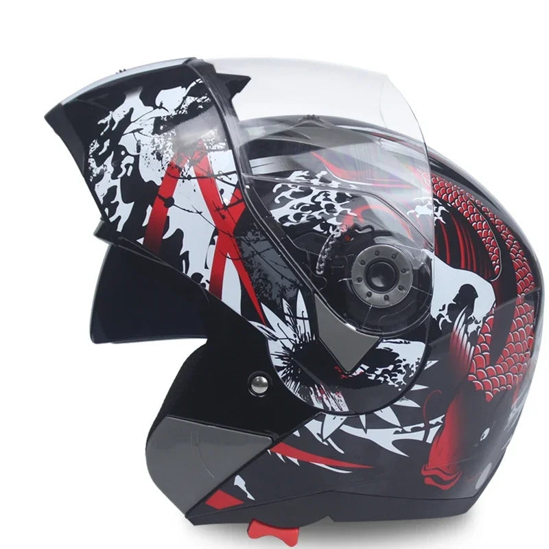 Casque Moto Homme avec un coque ABS haute résistance, visière anti-rayures avec protection UV, ventilation avancée pour un confort toutes saisons. Design aérodynamique réduisant le bruit et améliorant la stabilité. Homologué DOT et ECE, idéal pour route, scooter, motocross ou voyage. Vous n’êtes pas simplement motard. Vous êtes passionné. Et sur la route, chaque détail compte. Ce casque moto modulable a été pensé pour les riders, exigeants qui veulent allier sécurité maximale, confort sur mesure et design racé.