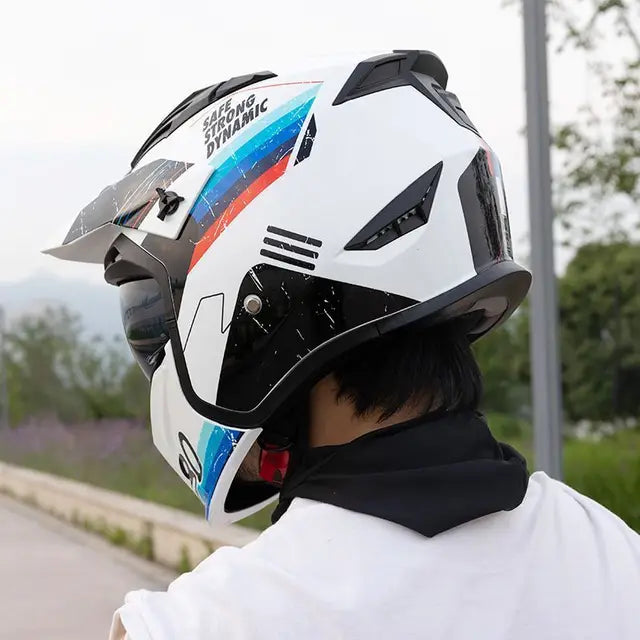 Pensé pour les motards exigeants, ce casque moto homme allie protection maximale, confort premium et ventilation optimale. Idéal pour toutes les saisons, il est taillé pour la vitesse, la descente et la liberté.