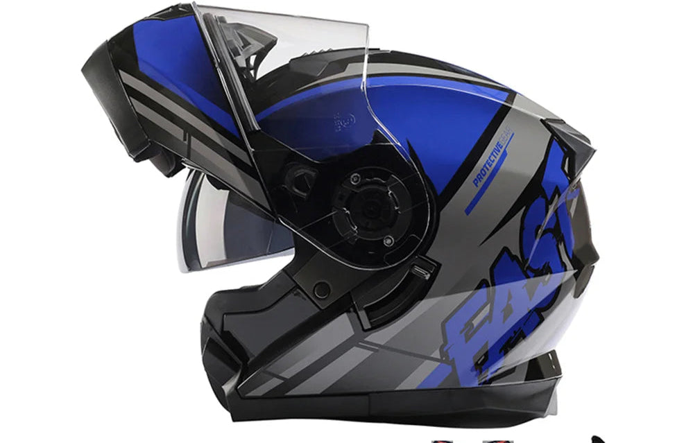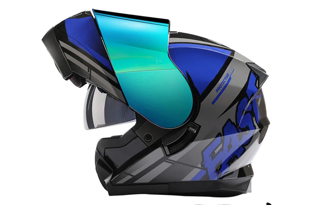 Casque moto homme modulable certifié DOT ECE, conçu pour offrir une sécurité maximale et un confort supérieur sur route ou en tout-terrain. Équipé d’une double lentille avec visière solaire intérieure rabattable, il assure une vision claire et une protection optimale contre le vent, la poussière et les rayons UV. Son design aérodynamique et léger réduit la résistance à l’air, idéal pour les longues distances comme pour les trajets quotidiens.