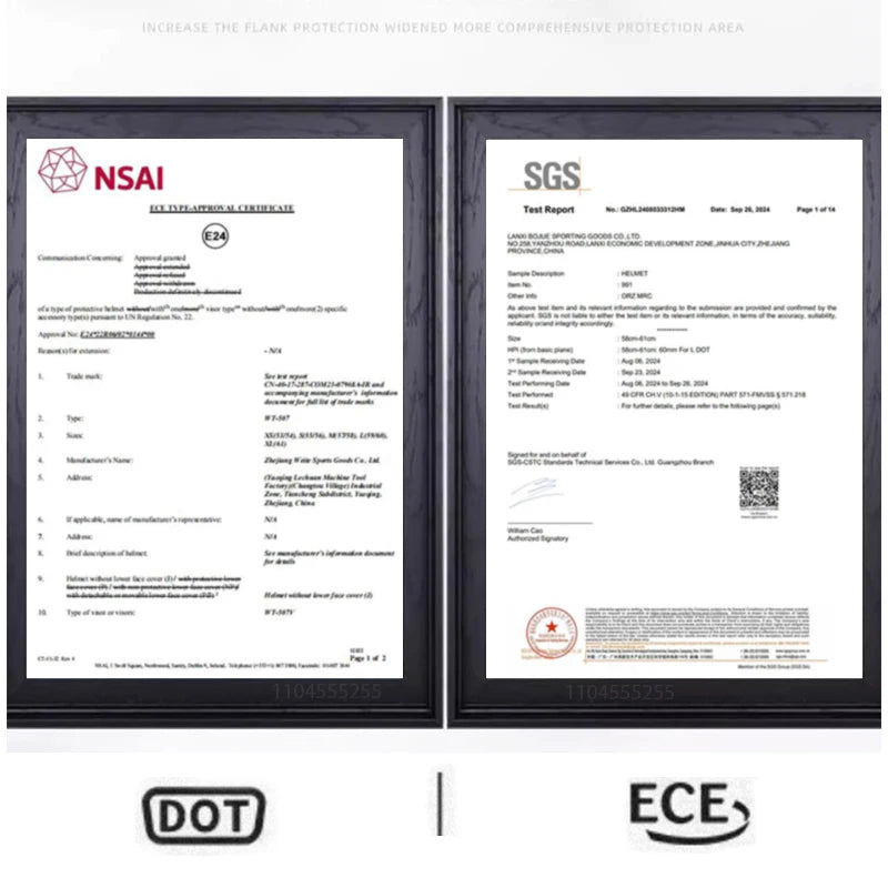 Ce casque est certifié ECE et DOT, répondant aux normes de sécurité reconnues internationalement.