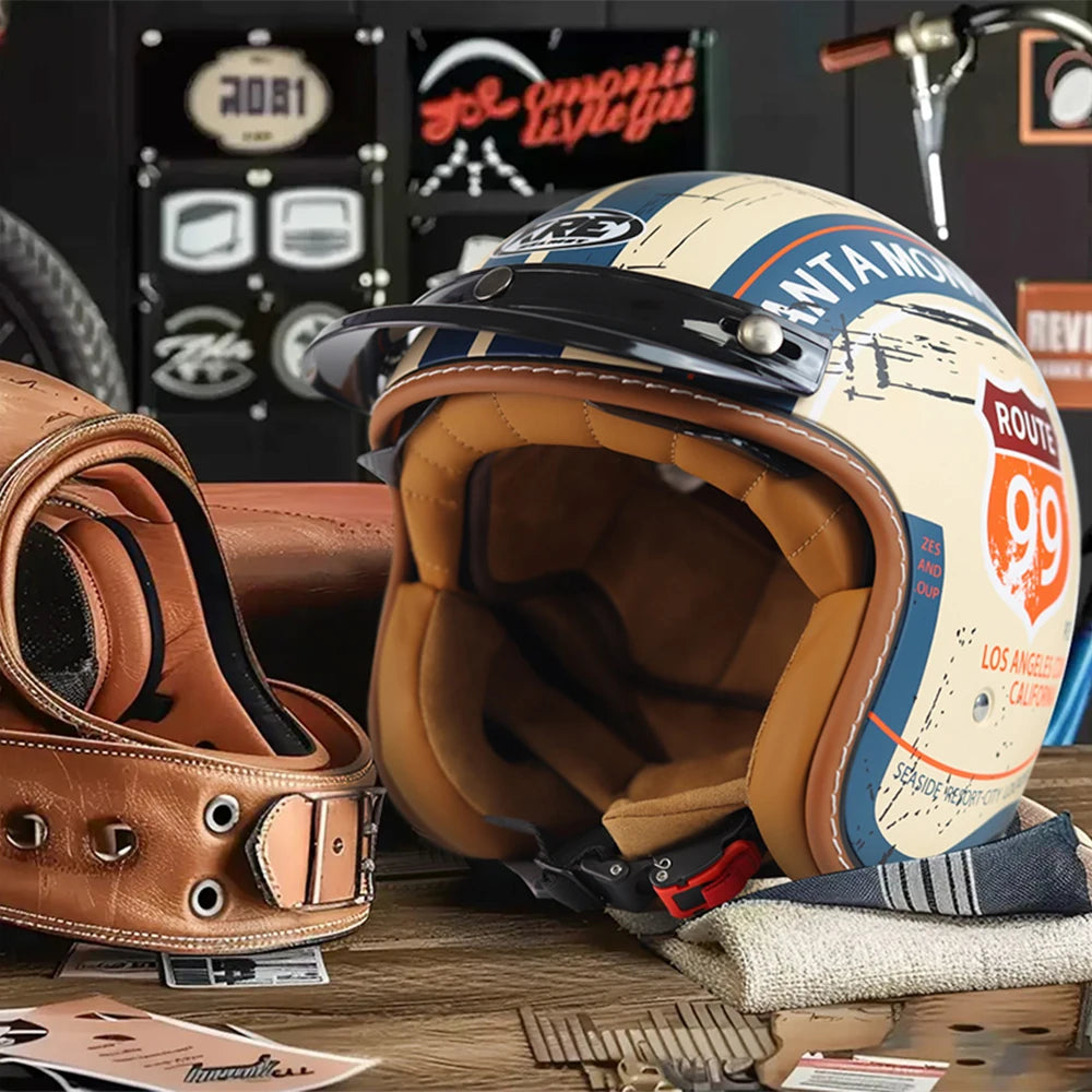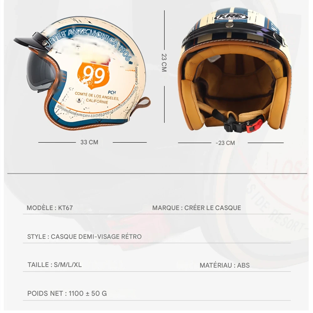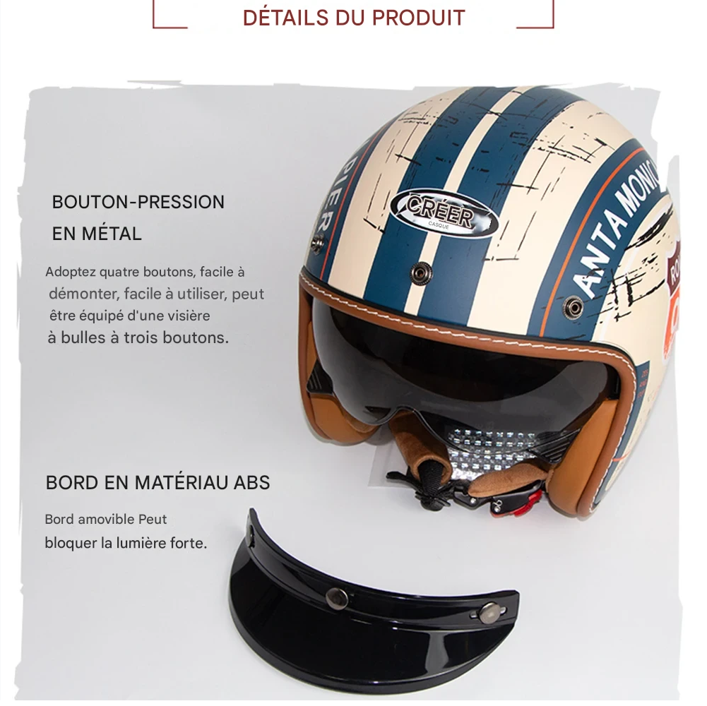 Ce casque demi-visage combine une légèreté incroyable, un look rétro-chic et une protection certifiée.