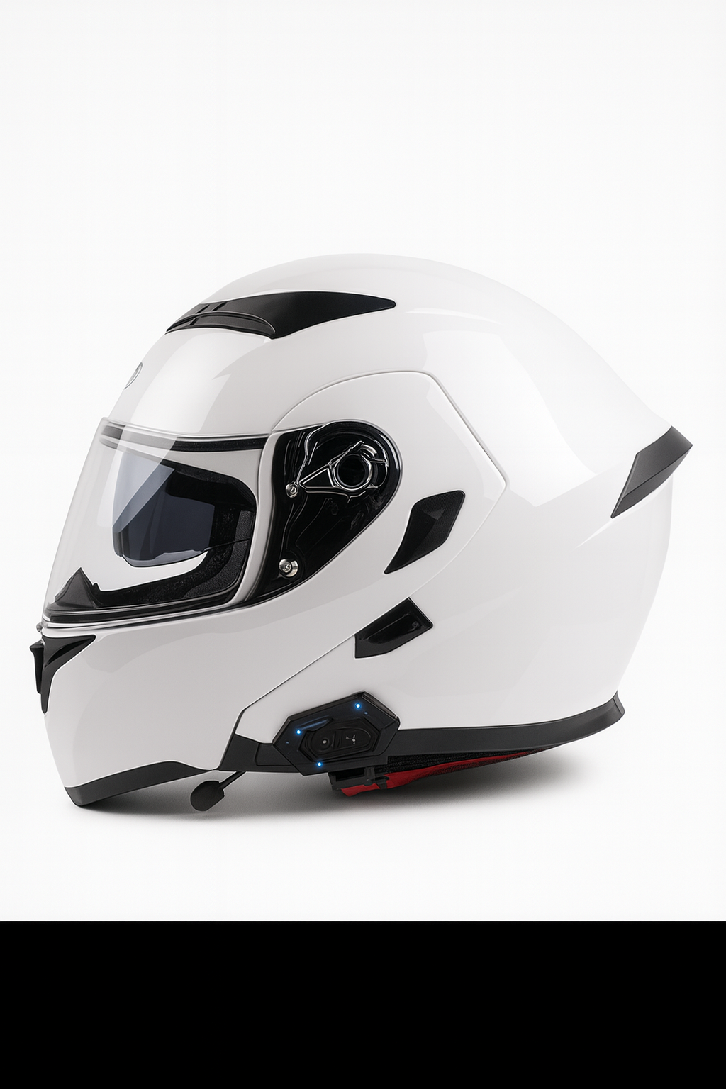 Casque moto avec Bluetooth intégré pour appels, musique et GPS, visière relevable anti-rayures, écran solaire interne, coque ABS haute résistance, intérieur lavable et boucle micrométrique. Idéal pour confort, sécurité et connectivité sur route.