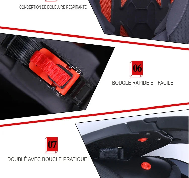 Ce casque est certifié ECE et DOT, répondant aux normes de sécurité reconnues internationalement.