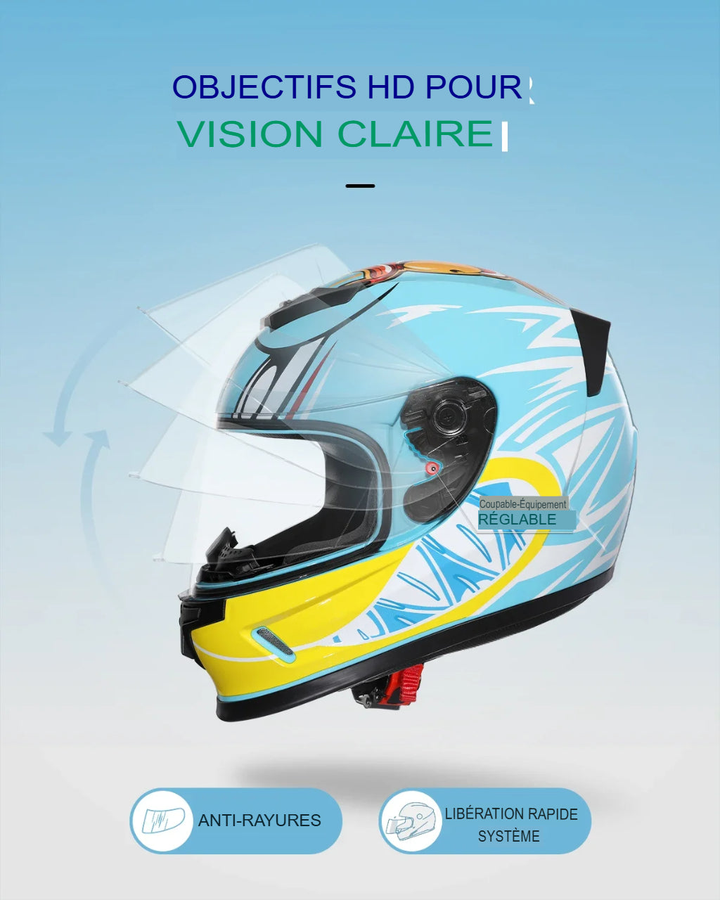 Ce casque est certifié ECE et DOT, répondant aux normes de sécurité reconnues internationalement.